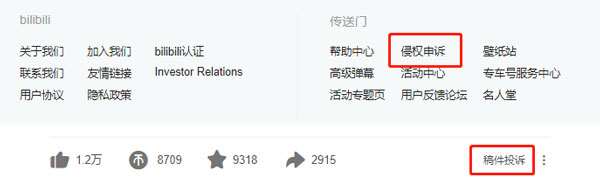 如果与侵权的UP主沟通,但是对方不回复或者恶意相对,可以通过哔哩哔哩首页下方的传送门【侵权申诉】,根据指引提交在线申诉;
