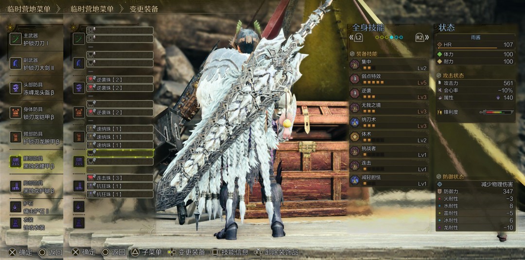 太刀由于需要纳刀3,所以需要3个1级孔,那么上面大剑那套配装可以稍微改一改。另外太刀在见切时会消耗大量耐力,所以精神抖擞的相性度会稍微低一些,可以考虑不用,如果用的话需要配合体术猫饭和强走药还要 1级体术。