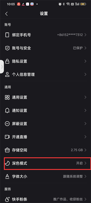 快手深色模式怎么设置
