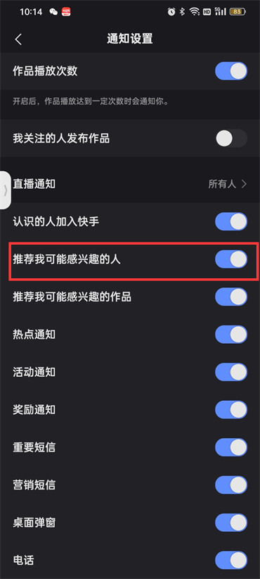4.然后在通知设置的页面中点击关闭【推荐我可能感兴趣的人】即可;