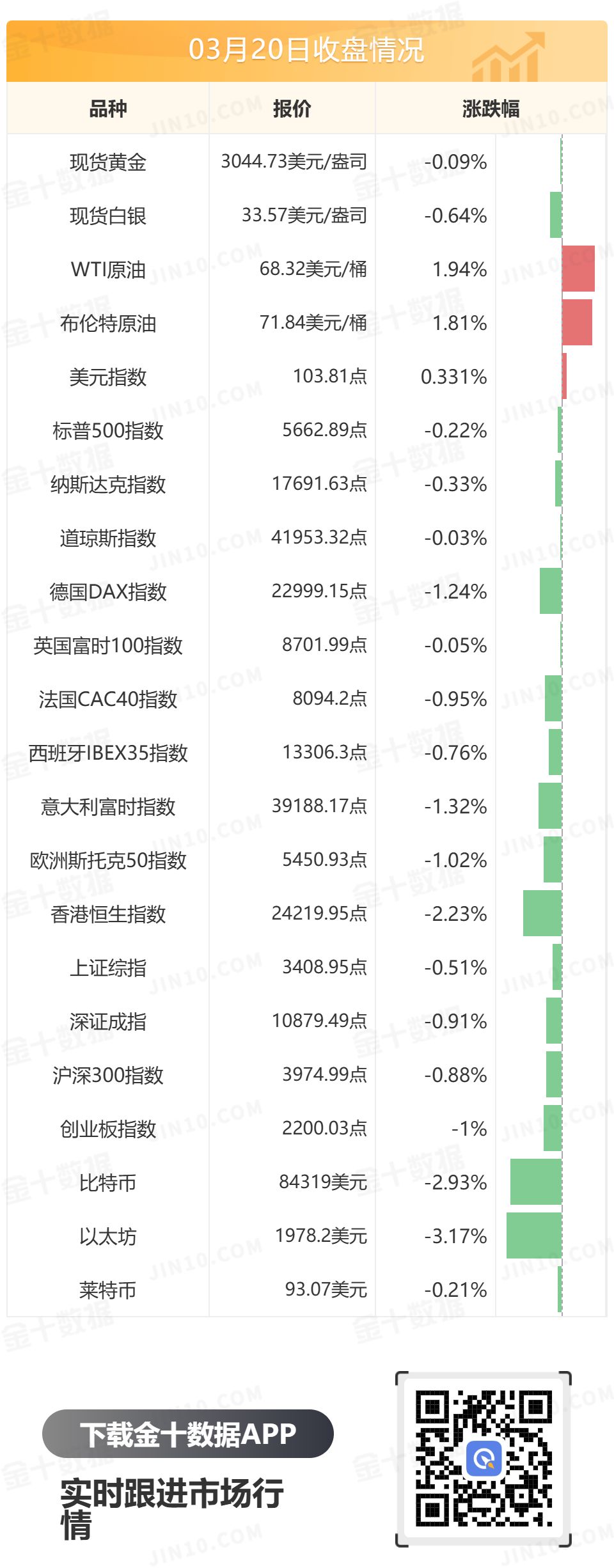 1、全球贸易博弈-①特朗普敦促美联储降息,称美国关税开始影响经济;②墨西哥经济部长:周四前往华盛顿进行贸易会谈;③欧盟贸易专员:考虑将对美国的首轮反制关税的实施推迟到四月中旬;④特朗普:印度将从4月2日起被征收对等关税。