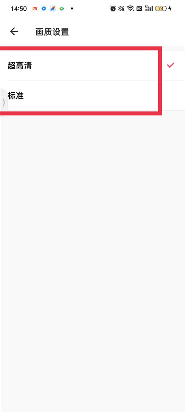 4.在设置画质的页面中有两个选项【超高清】和【标准】按照自己的实际情况选择,选择好之后直接点击就可以了;