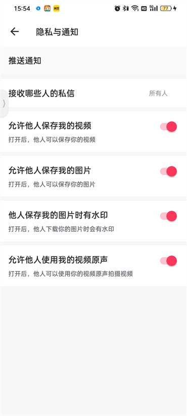 3.进入到此页面之后就可以设置相应的权限了点击开启或关闭;