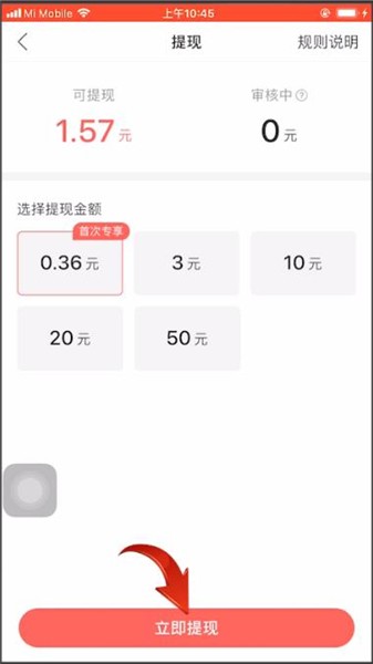 2、兑换完成后进入【我的收益】页面,再点击【去提现】,