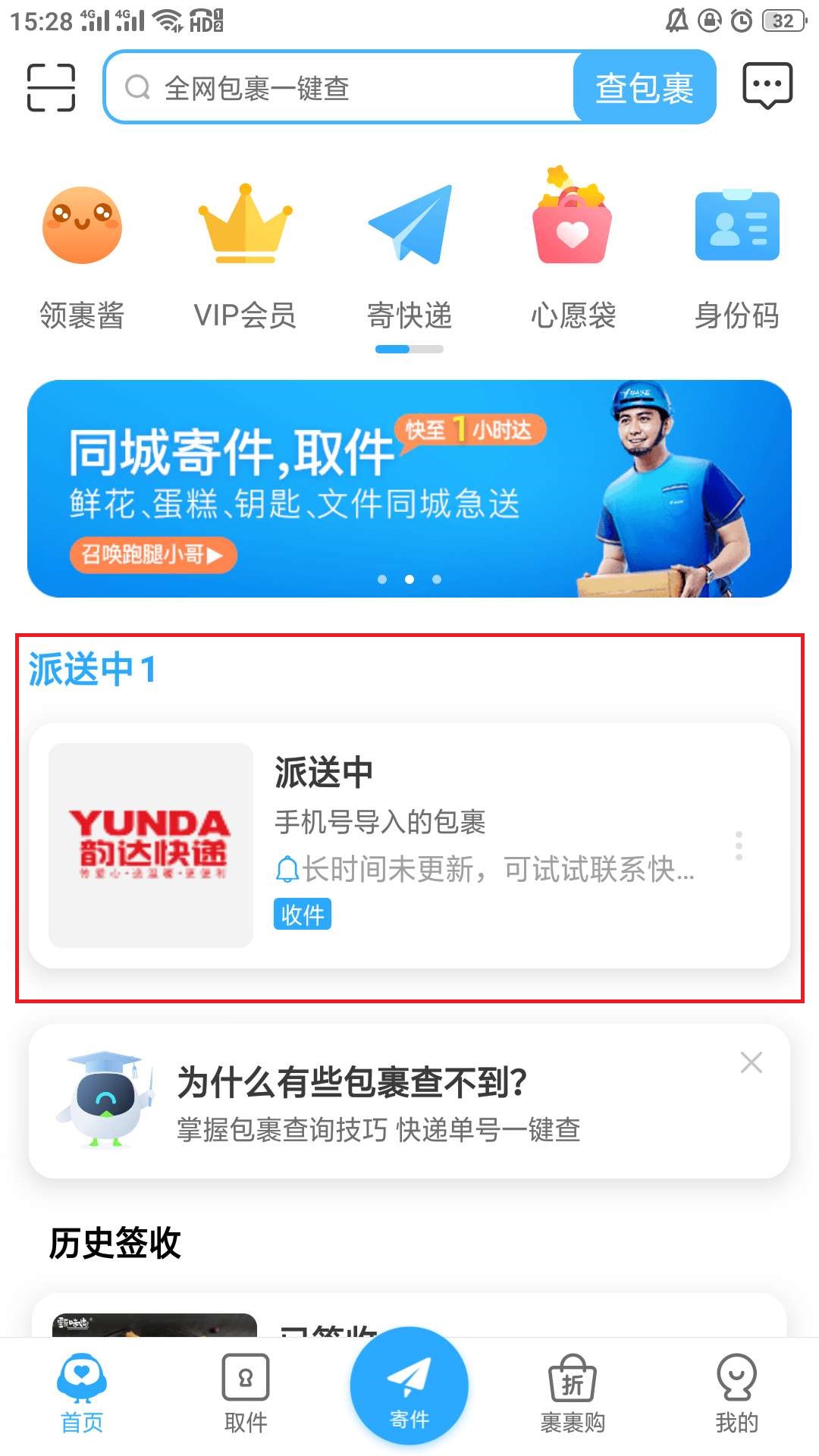 第五步:查询寄件信息可在菜鸟裹裹APP-我-我的订单中查看