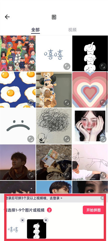 2.然后会进入到选择图片的页面,选择好之后点击页面右下方的【开始拼图】;