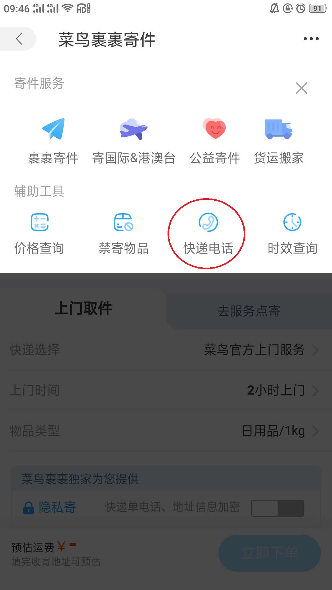 3、直接通过电话联系快递公司来寄件,重而达到自由选择快递公司寄件了。
