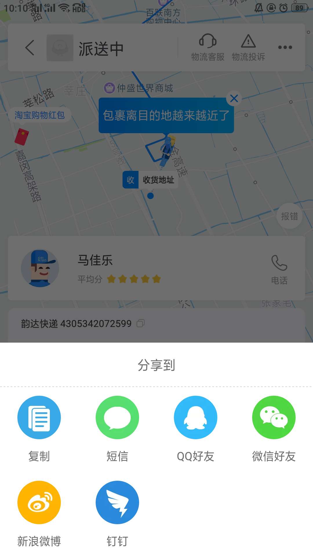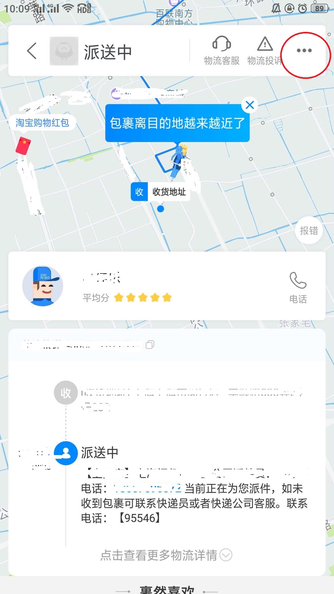 2、进入快递信息页面,点击右上方红圈分享给好友。