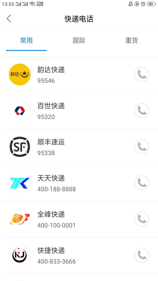 3、在联系电话页下拉,找到顺丰,拨打电话就可以了。