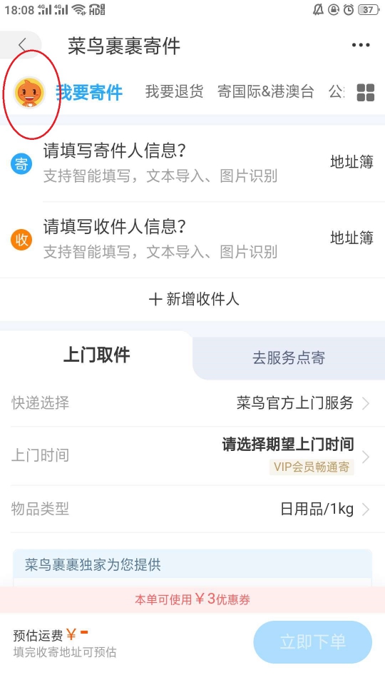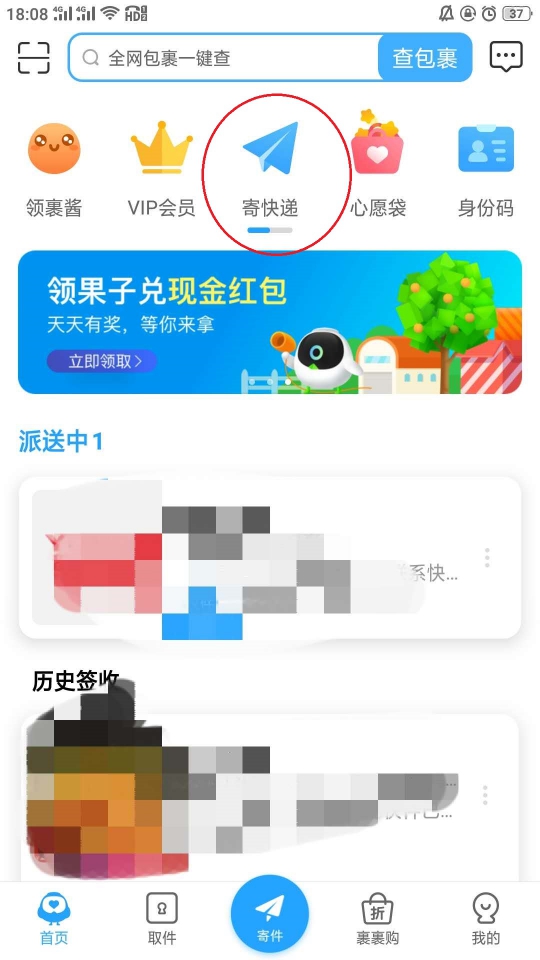 1、进入菜鸟裹裹APP,点击上方的寄快递。