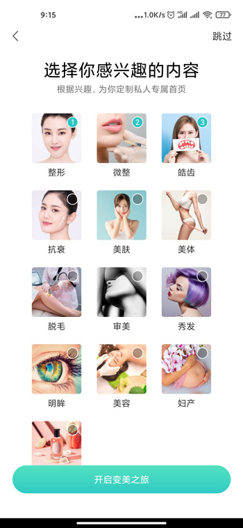 4.选择你感兴趣的内容,根据兴趣为你定制私人专属首页;