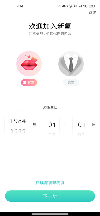 3.加入新氧,设置自己的生日以及性别,或者召唤墨镜帮我填;