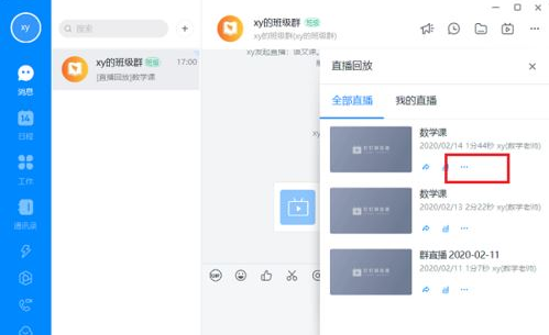 第二步进去直播回放界面,选择要设置下载权限的视频,点击三点图标