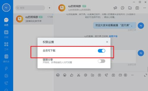 第四步进去之后,开启全员下载,之后群里所有的人都可以下载直播视频了,没有开启的话,只能群主和发布者能下载直播视频