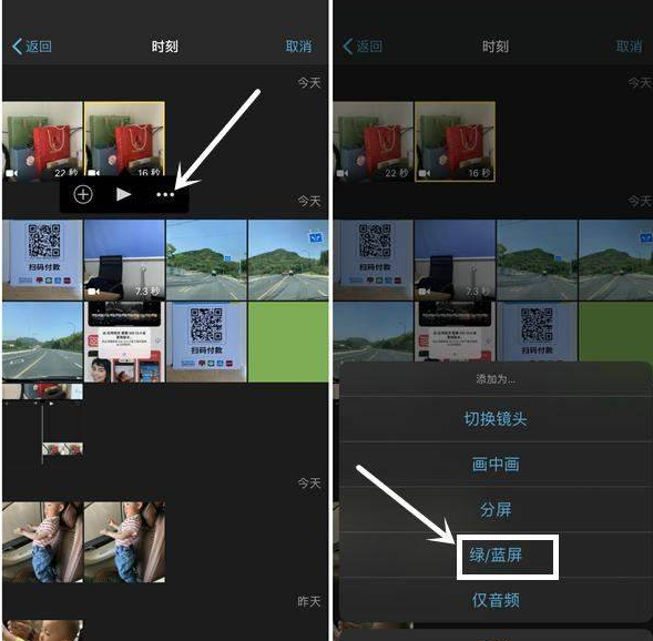 添加的时候需要注意点击三个点,选择绿/蓝屏这个选项载入视频