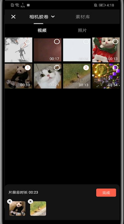 3、选择你需要合成的两个视频点击完成即可合成为一个视频