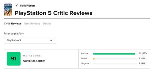 除了对玩家的尊重之外,对自己作品的精心打磨更是让《双影奇境》成为了2025开年以来评分最高的游戏。Metacritic上PS5版共获得84家媒体的评分,平均分高达91分。PC games、Eurogamer、Gamereactor UK等9家媒体都给予本作满分评价,其中Eurogamer认为,《双影奇境》从头到尾都十分精彩,是迄今为止最具创造性和乐趣的合作游戏之一,游戏内融合了大量的游戏彩蛋,让许多Z世代玩家倍感亲切。