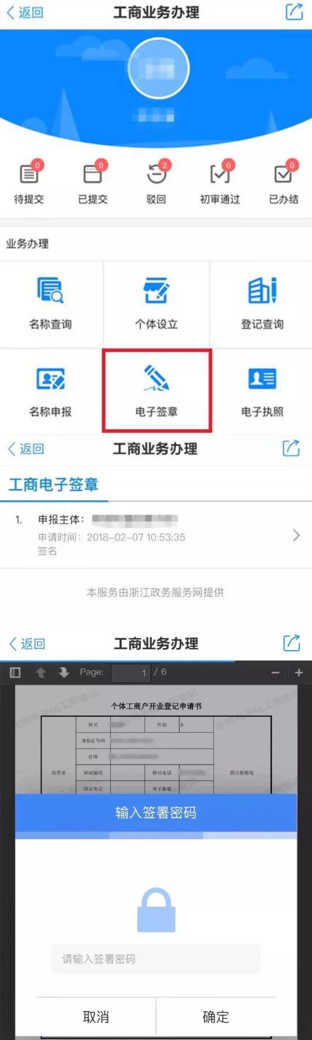 如果申请人选择是“无纸(全程)电子化登记”,在平台提交申请并通过工商部门材料预审后,系统会自动给需要签名的用户推送手机短信,通过点击短信中的链接,申请人可在线浏览需要签署的申报材料,确认无误后扫描二维码,即可完成在线手写签名,一次签署覆盖所有材料。