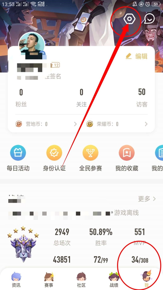 1、进入王者营地软件,点击下方我的,在我的页面点击设置。