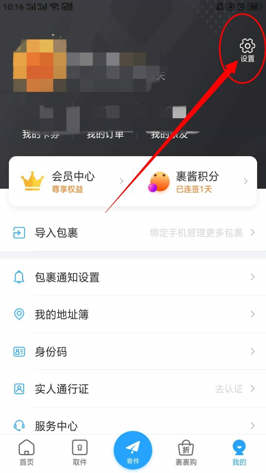 1、进入菜鸟裹裹APP,点击下方我的,进入我的界面。
