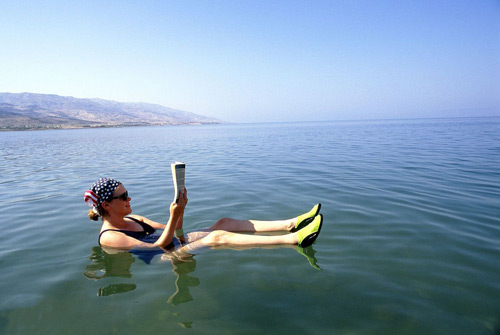 死海位于以色列, 巴勒斯坦、约旦交界,是世界上最低的湖泊,湖面海拔-430.5米。湖最深处380.29米,最深处湖床海拔-800.112米。也是地球上盐分居第三位的水体,仅次于含盐量第二的南极洲唐胡安池及第一的位居埃塞俄比亚的Gaet'ale Pond。