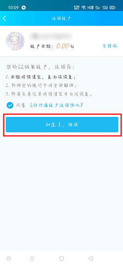 5、在注销账户之前,我们需要确认自己的账户下是否还有余额,如果有,需要先将余额进行转账或消费,因为注销后账号资金会被清空,之后按照提示进行操作即可。