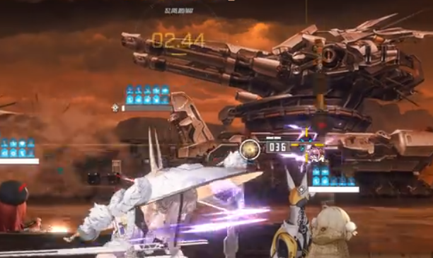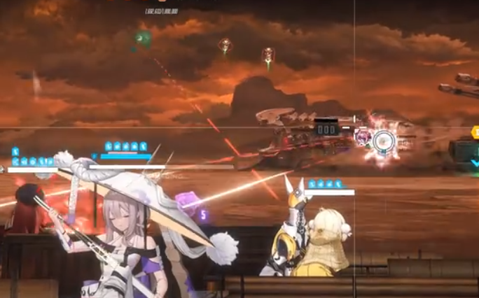 清理完右侧的飞弹堡垒之后,就可以清理左侧的炮塔,把这些全都清理完毕之后,这个角色还会把车头和车身分离,这时候车头也会不断地发射飞弹,玩家需要在这时候操控角色,及时进行对冲攻击,打爆飞弹的同时,还需要寻找间歇攻击对方的弱点,可以寻找一下对手角色身上的红圈,要操控角色集中火力击打红圈,这样就能快速制衡对手。