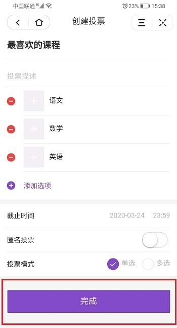 4、进去创建投票界面,输入投票主题,选择投票项