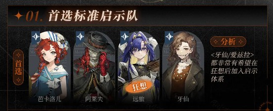 没有培养首选队但是抽取了阿莱夫的司辰,也可以选择<阿莱夫 狂想玛蒂尔达 群体辅助 生存>的泛用配队玩法体验。