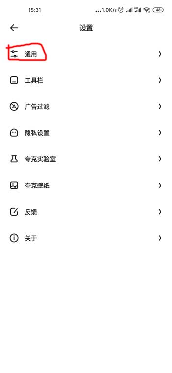 2.在设置界面中找到第一个【通用】设置进入搜索引擎切换界面;