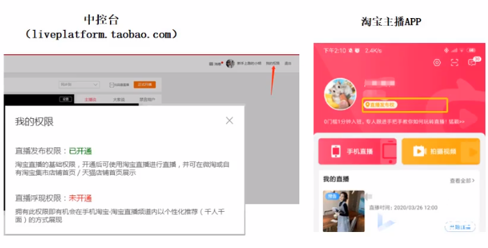 1.通过中控台https://liveplatform.taobao.com/live/live detail.htm,查看是否拥有浮现权;