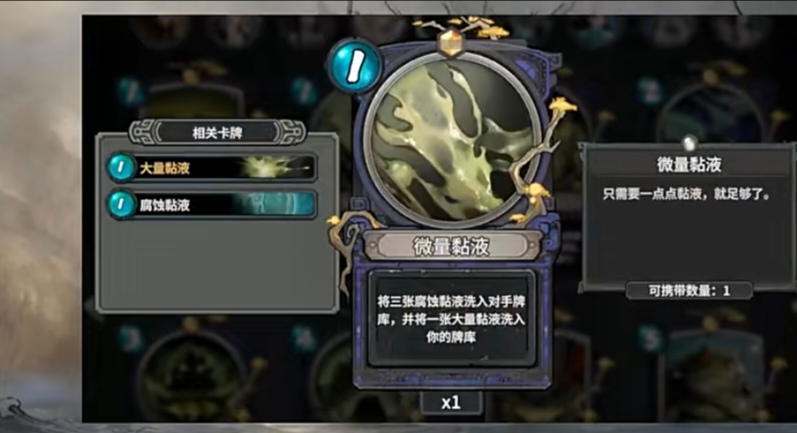 粘液缠身也属于粘液体系的卡牌,这张卡牌属于法强卡,将3张带有粘液的卡牌洗入对方的卡牌库,对手腐蚀粘液的伤害就会加1,喜欢玩粘液蛤蟆的话,这张卡是必须带的。