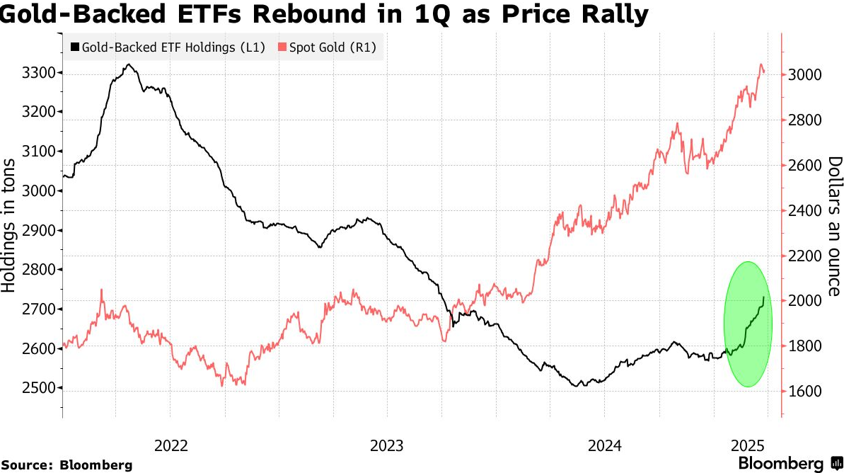 根据彭博社收集的数据,今年到目前为止,黄金支持的ETF已增加了约154吨。过去数年,由于高利率使持有现金而非黄金对西方投资者更具吸引力,黄金支持的ETF持续流出。今年,这一趋势发生了逆转,为黄金价格提供了支撑。