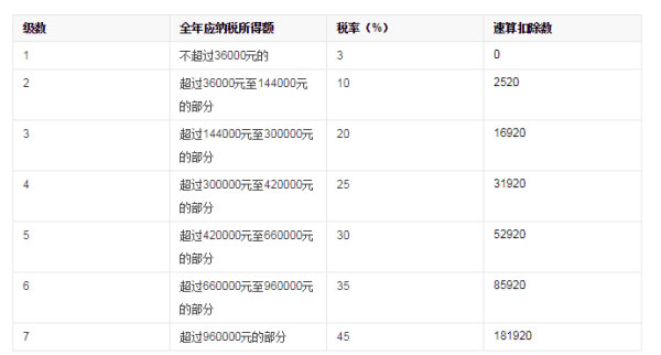1、综合所得税率:适用3%-45%的超额累进税率;