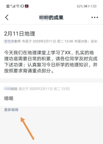 6、点击“重新编辑”,我们可以修改这个作业。