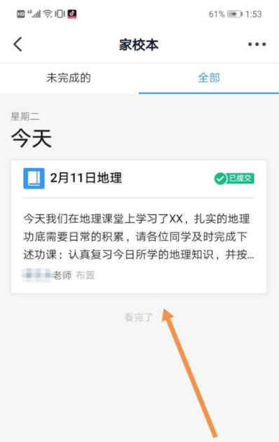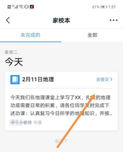 3、进入到“家校本”界面,找到你要提交的作业,点击“去提交”。