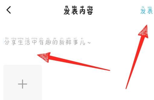 3、然后就可以打开右上角的加号,添加自己的动态信息;