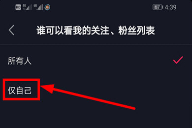 3、最后将权限设置为“仅自己”即可屏蔽别人了。