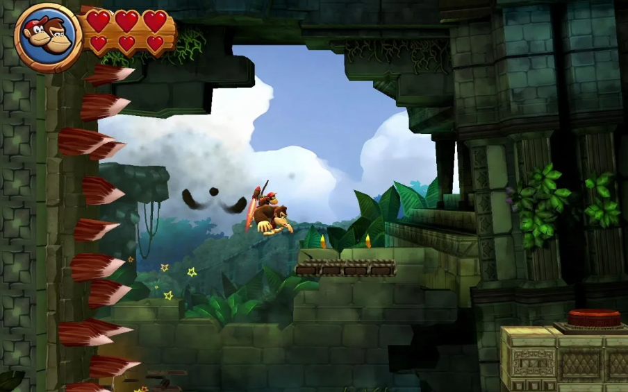 在森林关卡中,玩家会变成一只大猩猩,游戏视角转变为横板视角,再加上跳跃玩法,很容易让人联想到任天堂的《咚奇刚归来HD》。