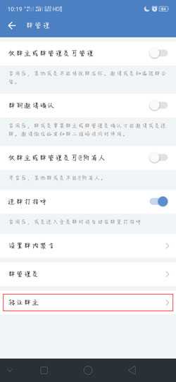 3、在最下方选择【转让群主】,选择群内需要转让的人员即可