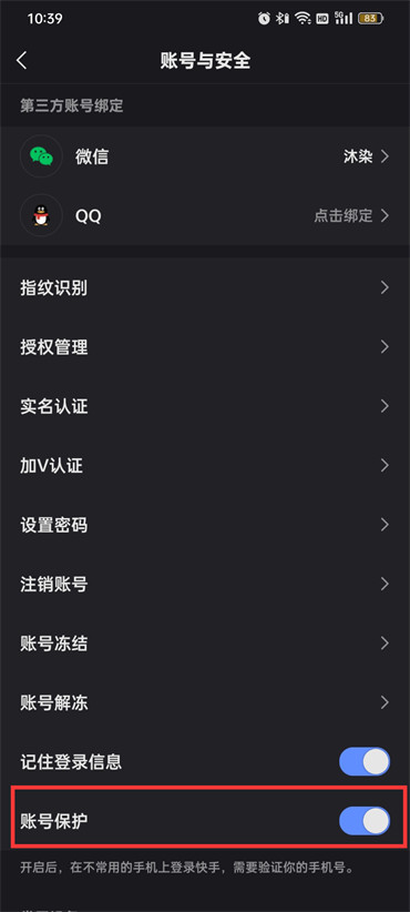 快手账号保护怎么开启
