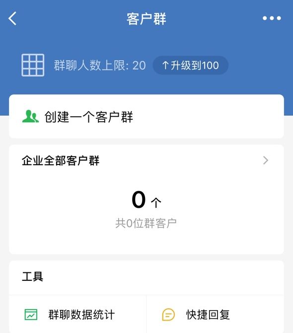 并且还可以创建包含微信用户的客户群,群聊人数从20增加到100。