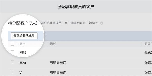员工离职后,企业客户资源会随员工个人微信一起带走,企业微信完美解决客户资源丢失的问题,有效转移客户资源,将已离职员工的客户,分配给其他员工继续跟进。
