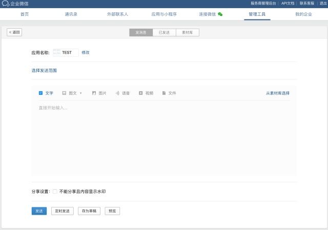 微信如果想添加自动回复内容,只能靠第三方微信管理工具来实现,但企业微信在消息群发上的优势完美继承了公众号。在设置消息自动回复的同时,还支持向企业微信好友发送文本、图文、音频、视频、图片消息,群发内容更加多样化,也方便企业做营销,传达价值内容。