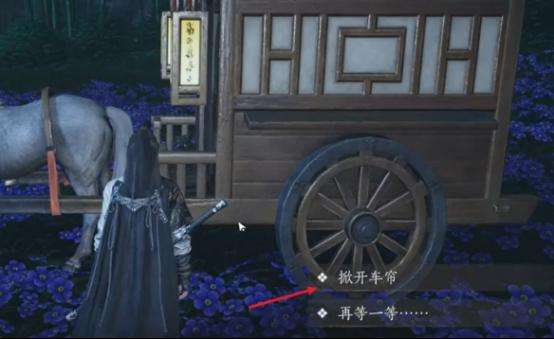 5、对话中选择揭开绣金楼车帘秘密进入。