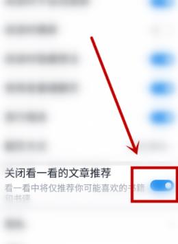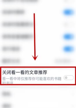 4、在【设置】页面,找到【关闭看一看的文章推荐】选项,可以看到该功能默认是关闭的。