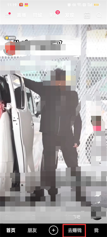 1.首先在快手极速版的页面中点击右下方的【去赚钱】;