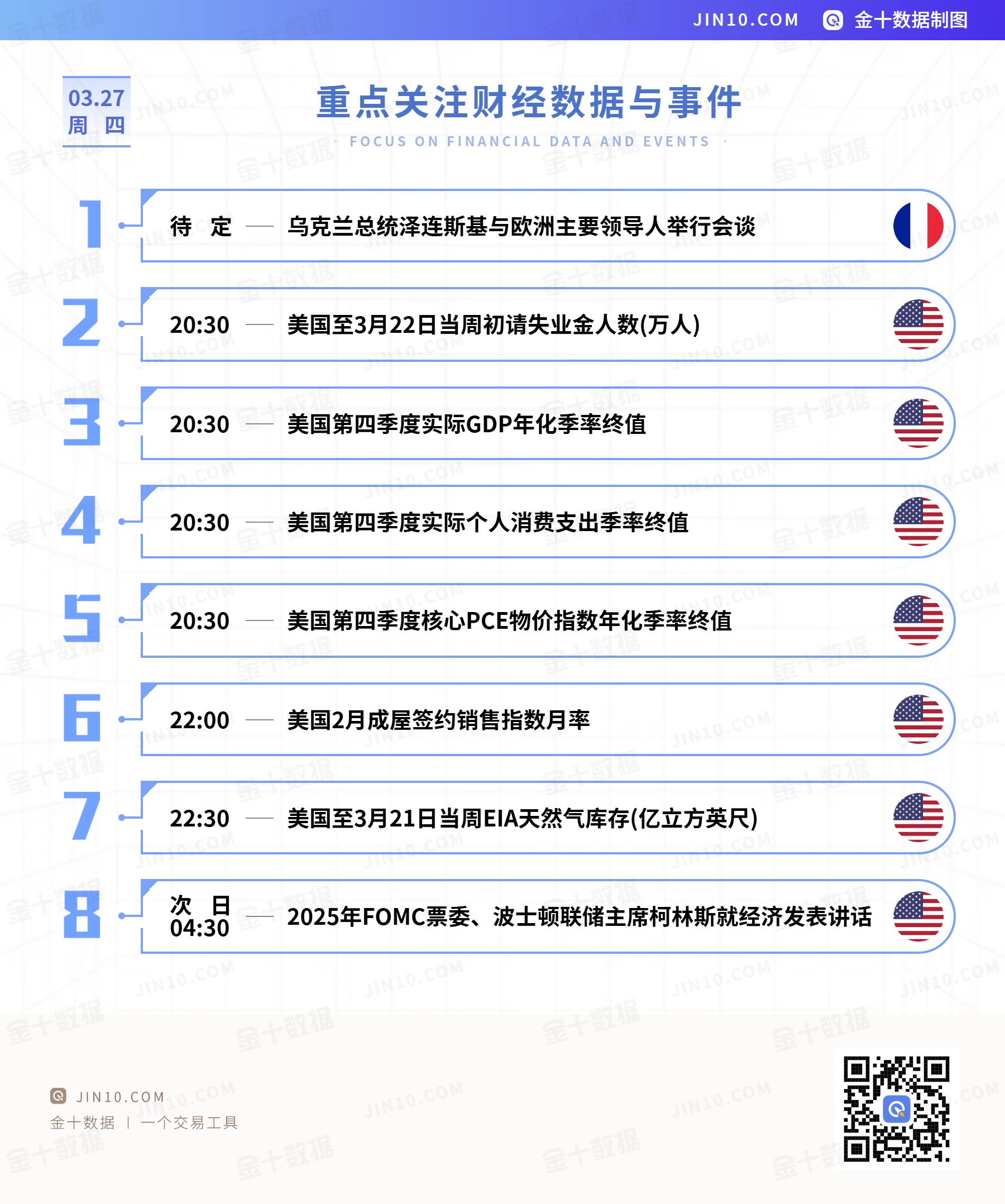 20:30,美国将公布2月核心PCE物价指数年率,市场预期为2.70%,前值为2.60%;