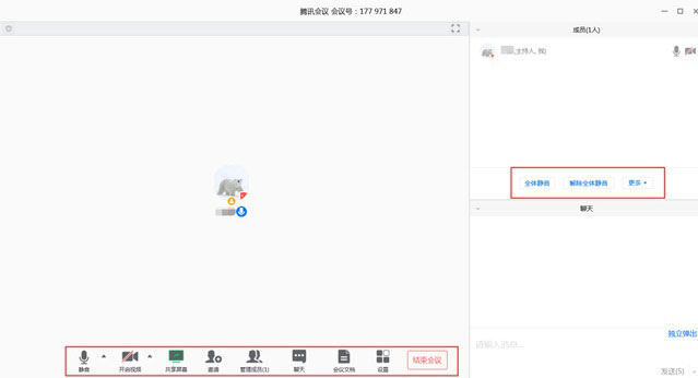 (3)全体静音:下方可支持您对当前会议内所有成员进行静音操作,您只需要点击“全体静音”即可,当有新成员加入会议时,也会默认被静音 。