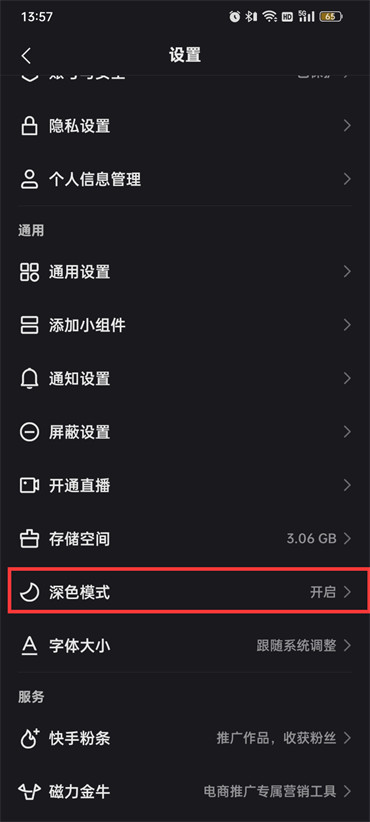 快手深色模式在哪里